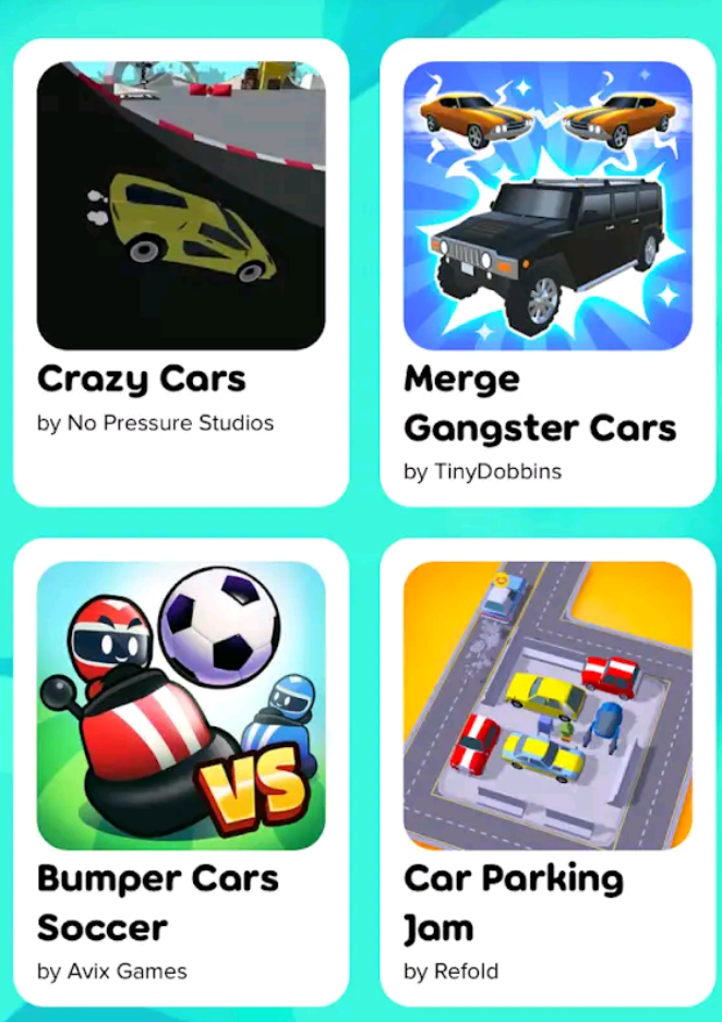 - Racing and sports titles for quick competitions,